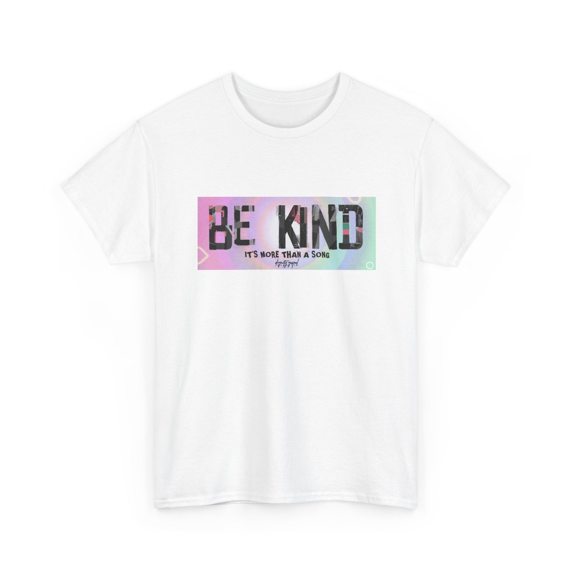 A soft, wearable reminder to slow down and show generosity. This classic crew tee carries a pastel, watercolor-style rectangle across the chest with bold, hand-lettered text that reads “BE KIND” and a small supportive subline below. Lightweight but sturdy, the shirt drapes casually and keeps its shape wash after wash. Wear it to morning coffee runs, community meet-ups, or laid-back volunteer days — it settles easily into a gentle, everyday wardrobe and starts conversations without shouting. The understated back keeps focus on the front message, while a tear-away label and ribbed collar make it comfortable for all-day wear. Thoughtful, quiet, and durable: a simple canvas for kindness.